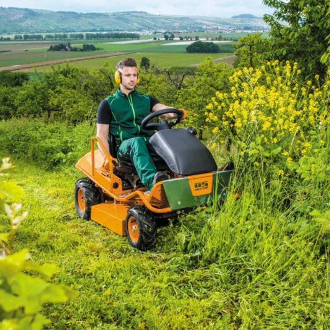 Durch die Messeruntersetzung bewältigt der AS 800 FreeRider Grashöhen bis zu 80 cm, während das Kreuzmesser-System das Schnittgut zuverlässig zerkleinert. Die zentrale Schnitthöhenverstellung, der stufenlose Hydrostat-Antrieb und die hohe Wendigkeit ermöglichen effizientes, komfortables Arbeiten auch unter schwierigeren Bedingungen.